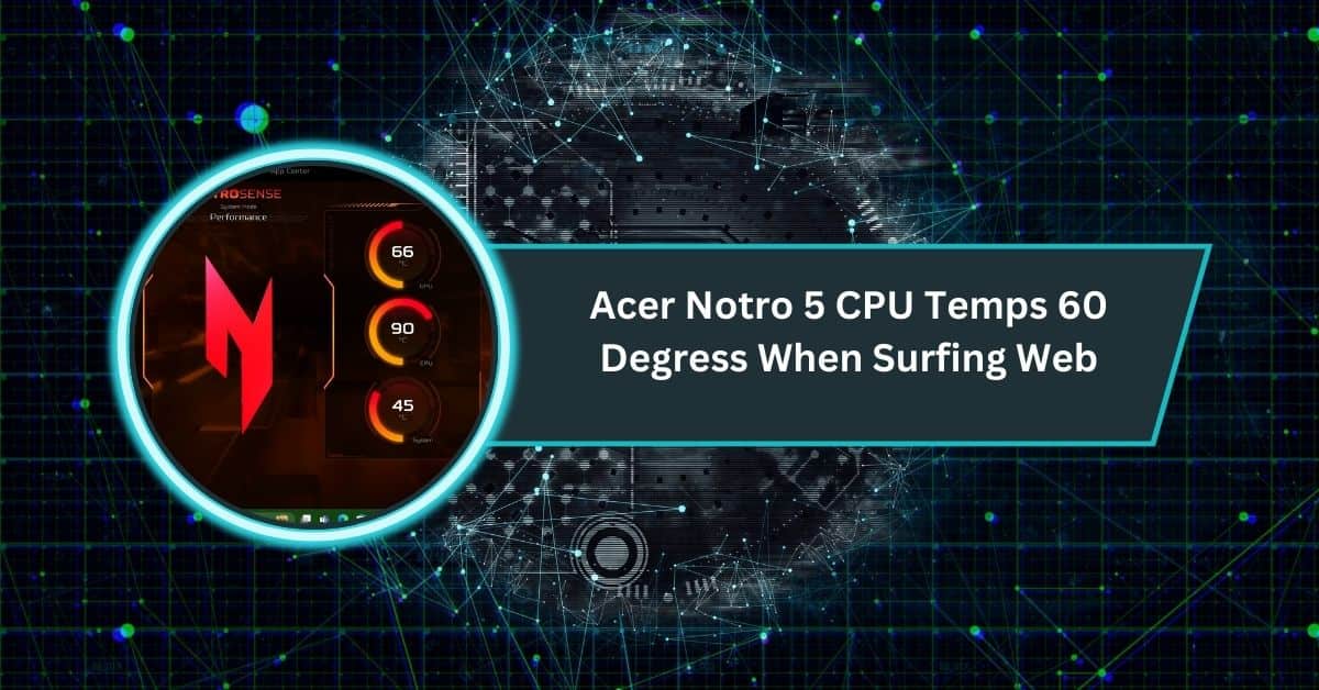 The Acer Nitro 5 CPU temp at 60 degrees while browsing is normal and safe. Many users report similar temps; clean fans, improve airflow, or repaste if it consistently stays higher during light web use.